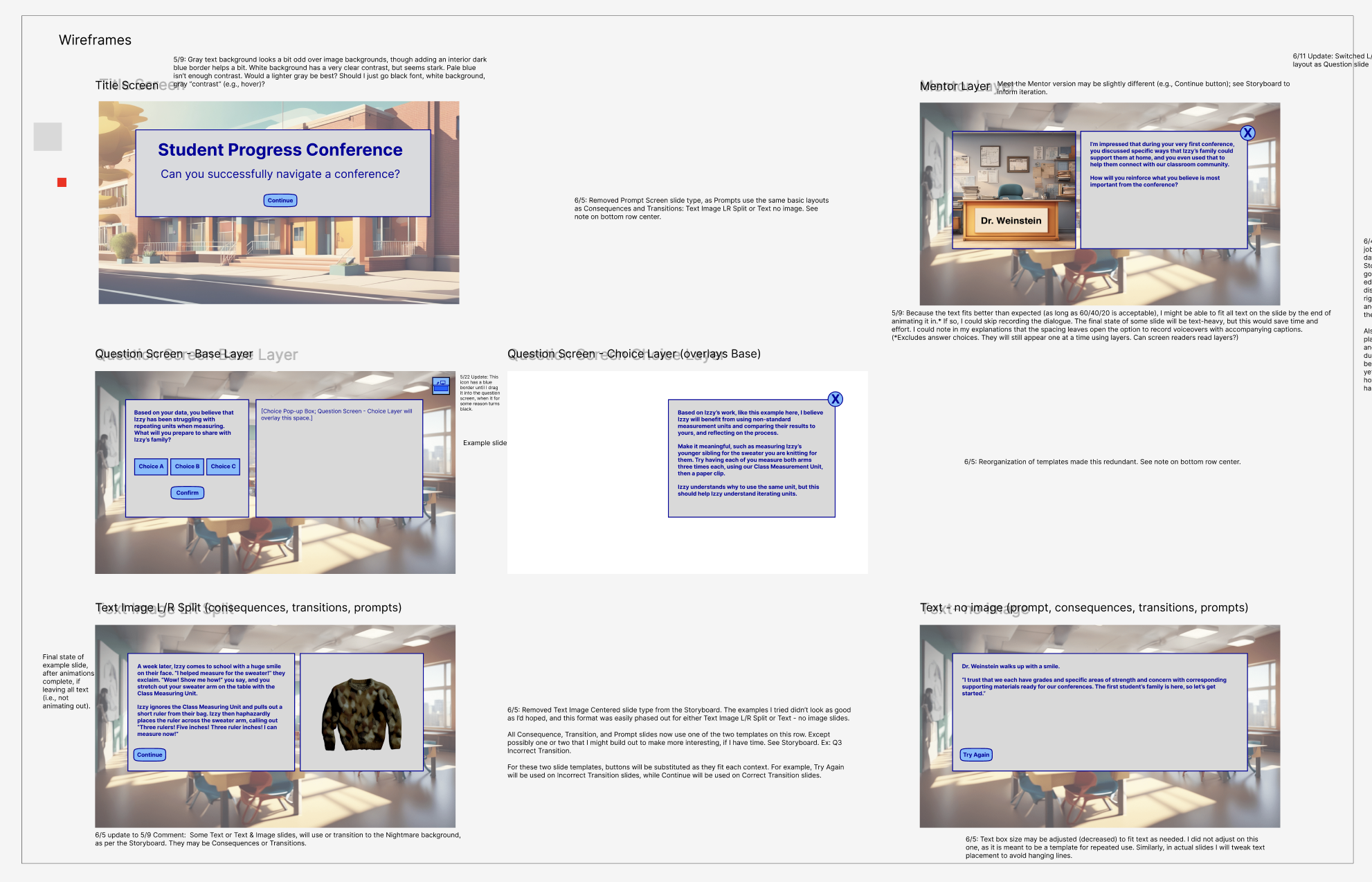 Process excerpts: evidence of adapting the subject matter into language for the client on the back-end (Concept Map) and planning phases (Storyboard excerpt, Style Guide, and Wireframes)